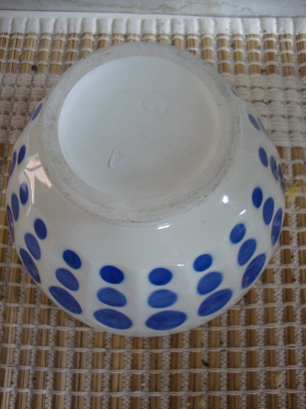 Deze kom is helemaal gaaf en heeft een diameter van 14 cm en is 7,5 cm hoog. Deze 'Bol' heeft een nummer 3 in de bodem gestanst.  Leuk om te kombineren met andere kommen in blauw wit en te gebruiken voor de muesli, soep, pap, sausjes etc.