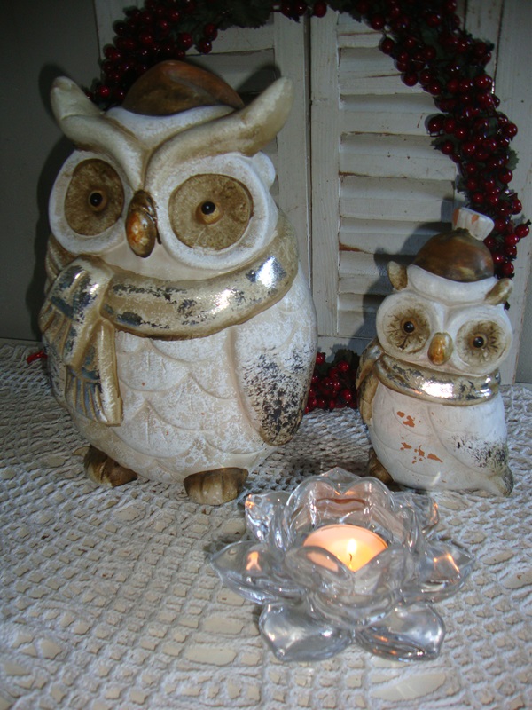 Brocante Kerst Uilen set gips