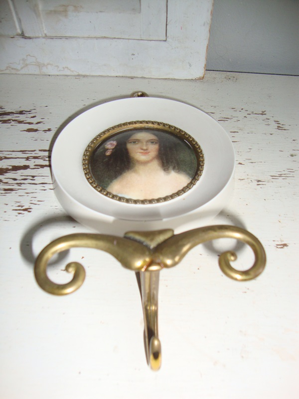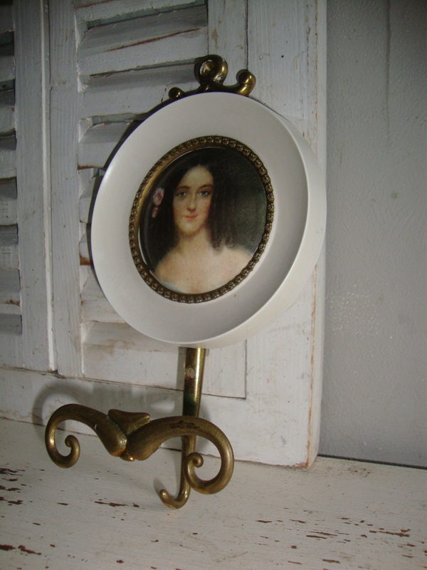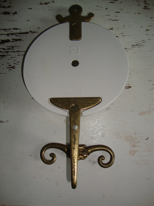 Mooie barokke messing of koperen wandhaak. met miniatuur portret in een wit frame. De haak is gemaakt van massief messing en heeft sierlijke Barok of Victoriaanse stijl krullen. De haak is 11 cm hoog en 4,5 cm diep. Het portretje heeft een diameter van 11 cm. Het is gemerkt Brevettato en komt uit Italie.