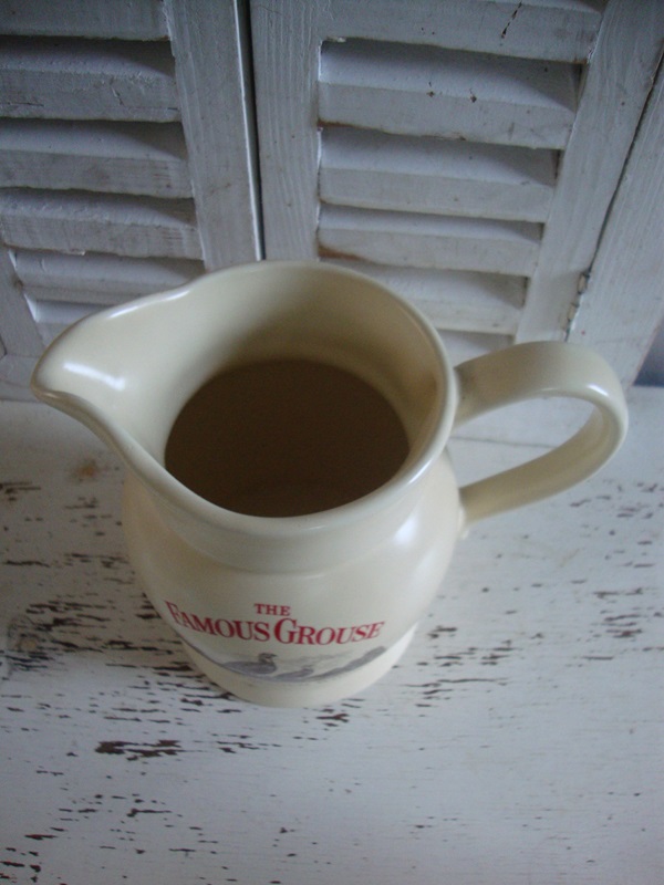 Mooie gave vintage water kan of karaf met afbeelding Famous Grouse Whiskey uit Engeland. Mooi matte creme kleurige kan met handvat. Gemerkt Wade PDM. De kan is gaaf en 14 cm hoog. Te gebruiken voor de water bij de whiskey.