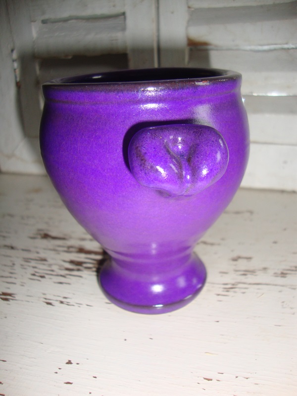 Schattig mini bloempotje in een mooie lila keramiek met grappige handgreepjes. Ideaal potje voor een cactusje maar ook erg leuk als lepelvaasje. Het potje is in nieuwstaat maar is toch vintage keramiek. Het potje is 9 cm hoog en diameter bovenaan is 7 cm.