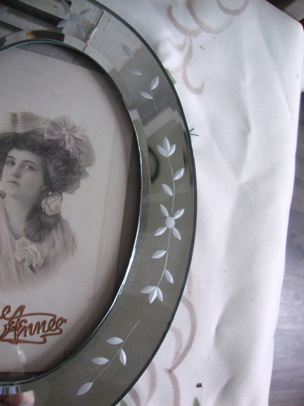 ovaal fotolijstje met spiegelrand - Juffies brocante
