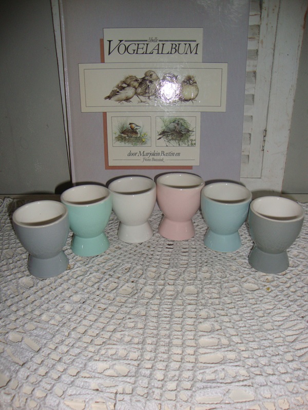 pastel eierdopjes set - Juffies brocante