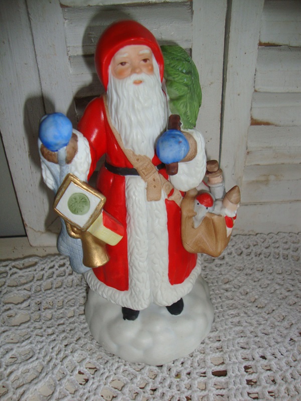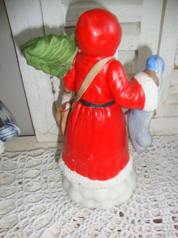 Mooie Kerstman speeldoos met opwindmechaniek. De melodie is We Wish you a merry Christmas. De Kerstman is gaaf en gemaakt van mooi biscuit porselein. De Kerstman draagt een kerstboom en een tas met cadeautjes. Mooi gedetailleerd vormgegeven en leuk om met de kerstdagen neer te zetten en te genieten van dit vrolijke wijsje. Deze Santa is 18 cm hoog.