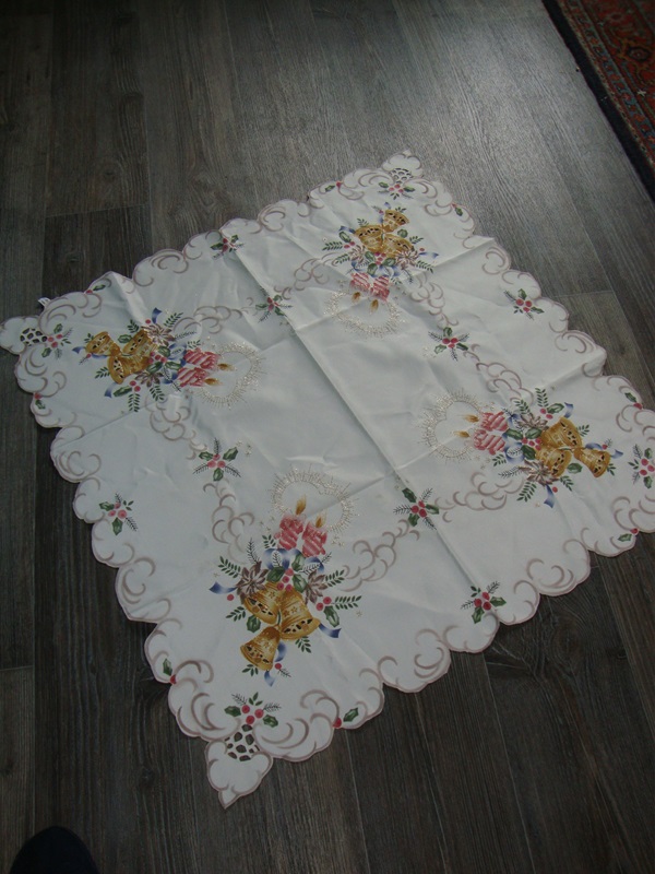 vintage geborduurd Kerst tafelkleed