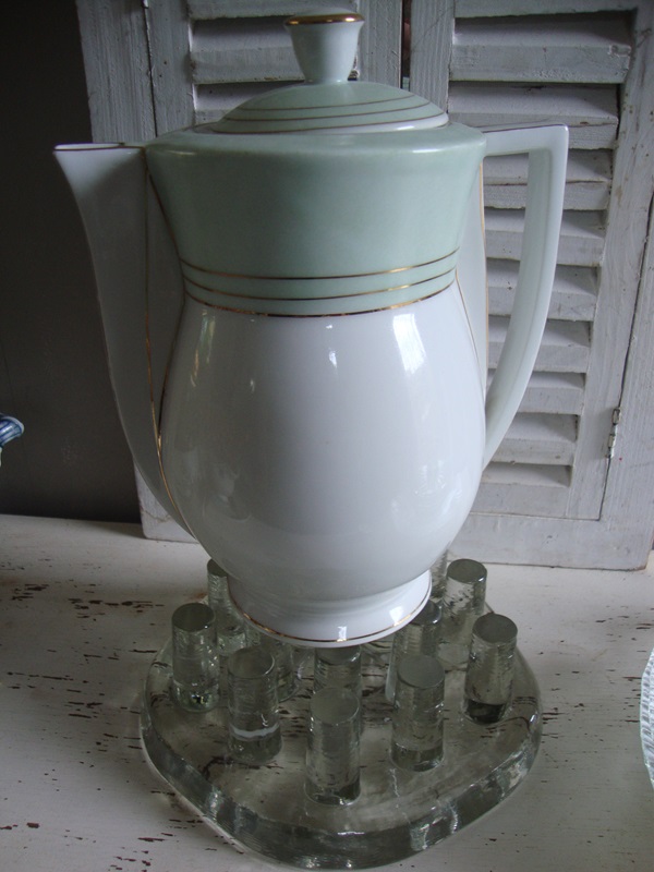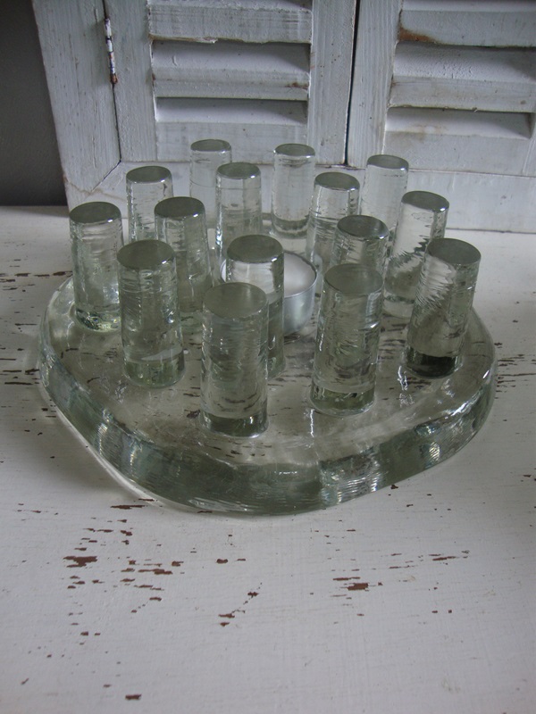 Deze glasconstructie is oorspronkelijk bedoeld als theepotwarmer (rechaud): een waxinelichtje wordt in het midden geplaatst om een theepot of schaal warm te houden.