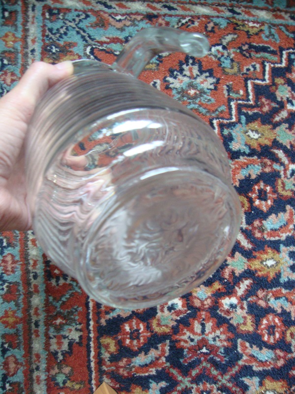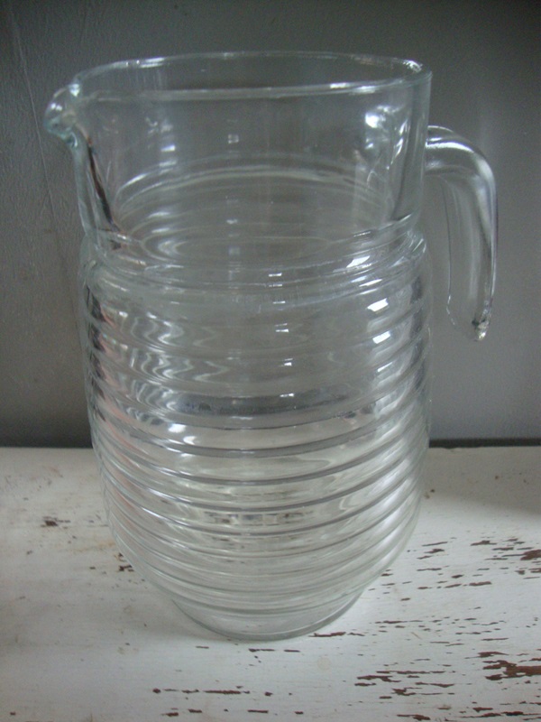 Mooie stevige glazen schenk kan voor limonade, water, sap etc. Deze bandenkan is als nieuw. Handig aan tafel maar ook leuk als vaas voor bloemen.