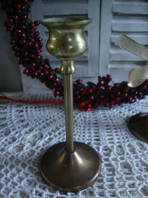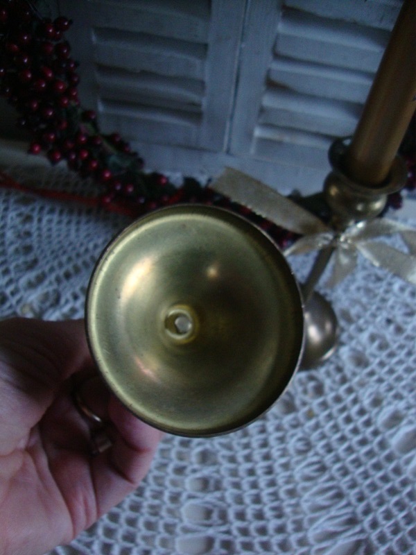 Twee mooie vintage messing kandelaartjes voor een dinerkaars. De kandelaartjes hebben een tulp model en een strakke rechte voet. Twee sierlijke kandelaartjes van 15 cm hoog.