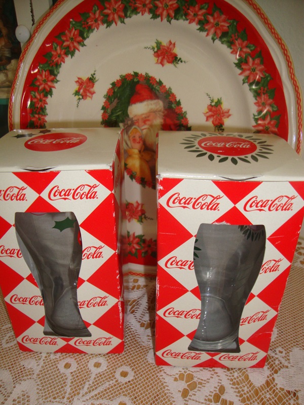 Coca Cola, Kerstglazen Cola, vintage Cola glas, Kerst Cola glazen
