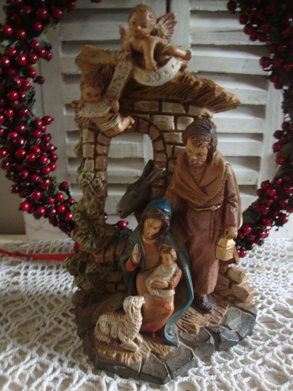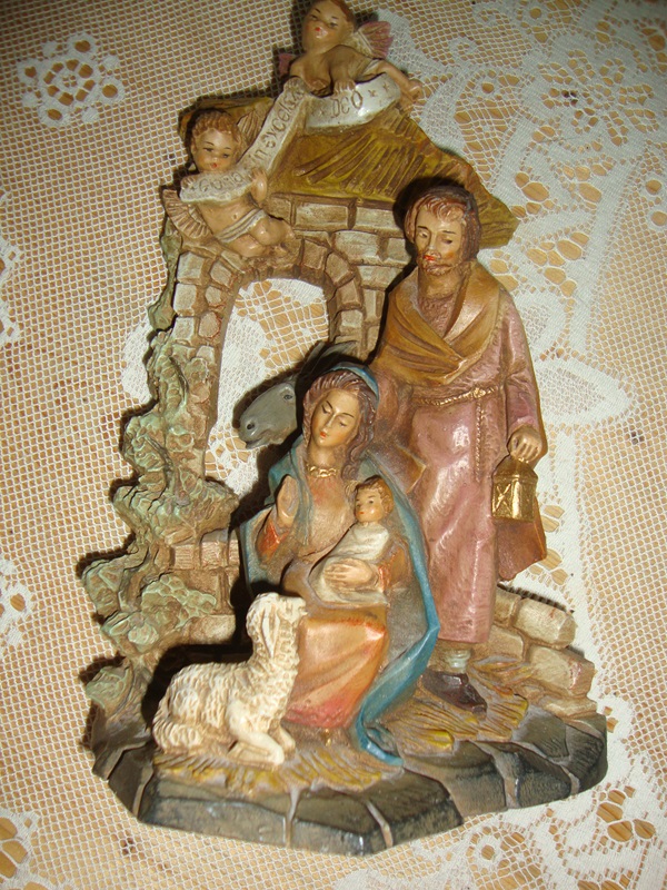 Een Kersttafereel uit de jaren '50 gemaakt door Arend Spoor Venlo. Het Kerst stalletje is een nativity of creche, een driedimensionaal staand object. Deze bevat een aantal figuren namelijk Jezus, Maria en Jozef, een paar engelen een ezel en een lam. In de jaren 50 werd deze gemaakt van polystone, gemalen graniet en of marmer vermengd met kunsthars. Deze Kerstgroep is 23 cm hoog en gemerkt aan de achterkant EIG. A.S.V 800. Elk ontwerp van deze kunstenaarsgroep is uniek beschilderd.